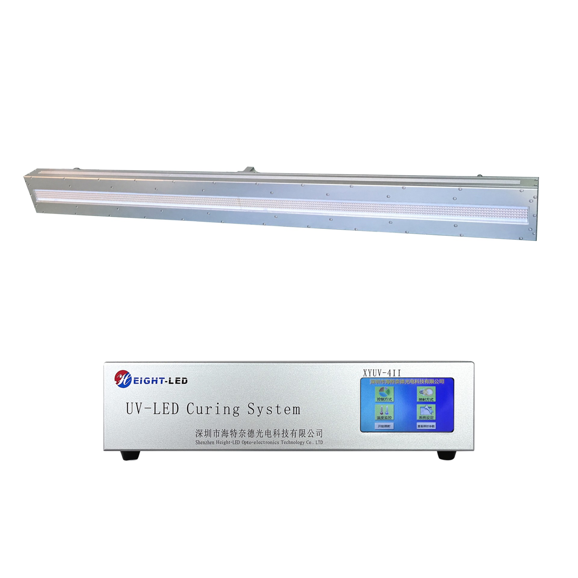 此UVLED照射頭采用進(jìn)口高強(qiáng)度紫外LED集成,UV光譜波長為395nm,采用強(qiáng)制水冷散熱,有效固化面積為1120X20mm,支持外部信號輸入和觸發(fā)。